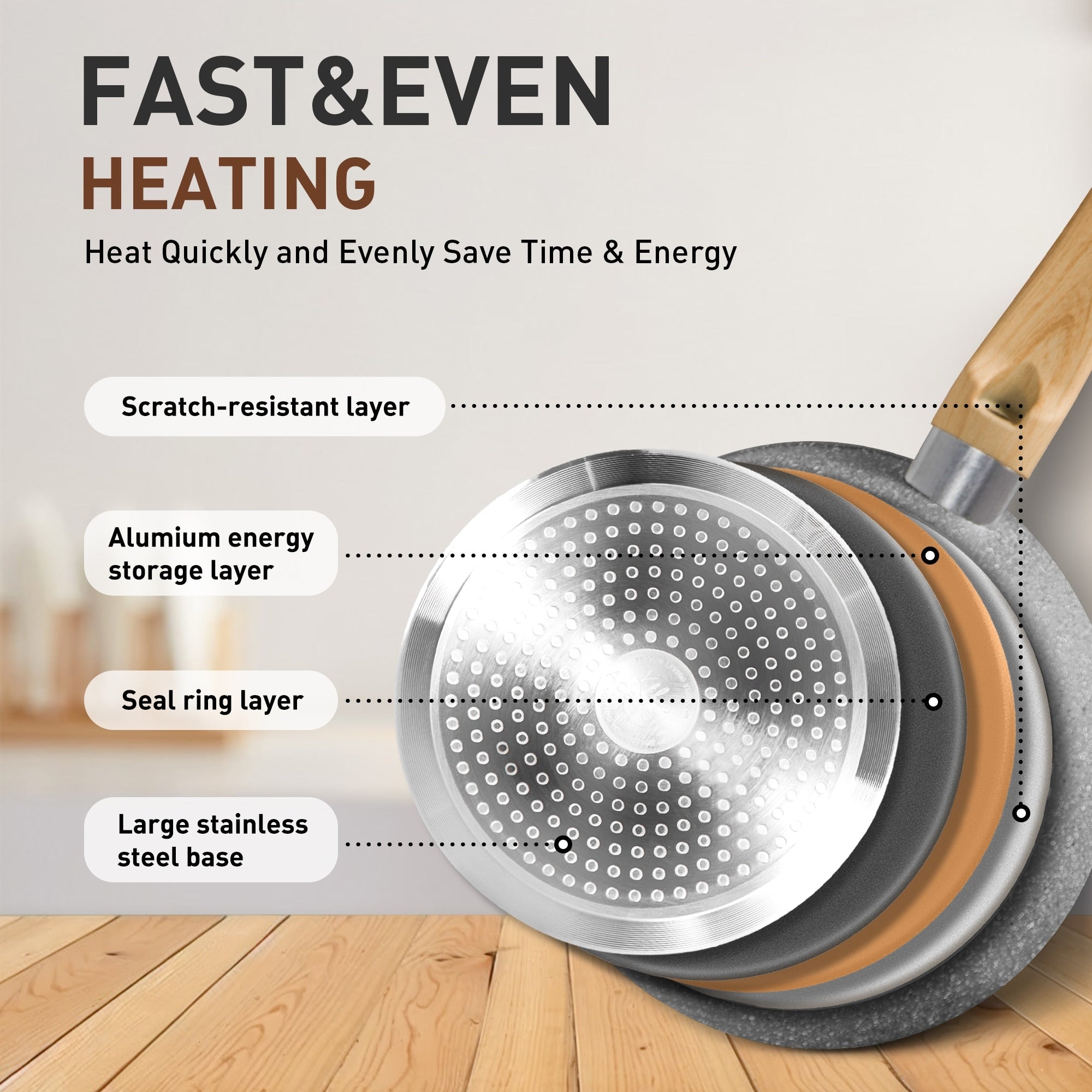 No Toxin Cooking Pans Set: When purchasing a new kitchenware set, please make sure it clearly states that it is lead-free, PFOS-free, and PFOA-free. Cooking pans cannot contain these three substances as they pose potential risks to the body. Fortunately, you can get granite cookware that is free of these harmful chemicals. For more healthy & Eco-friendly.