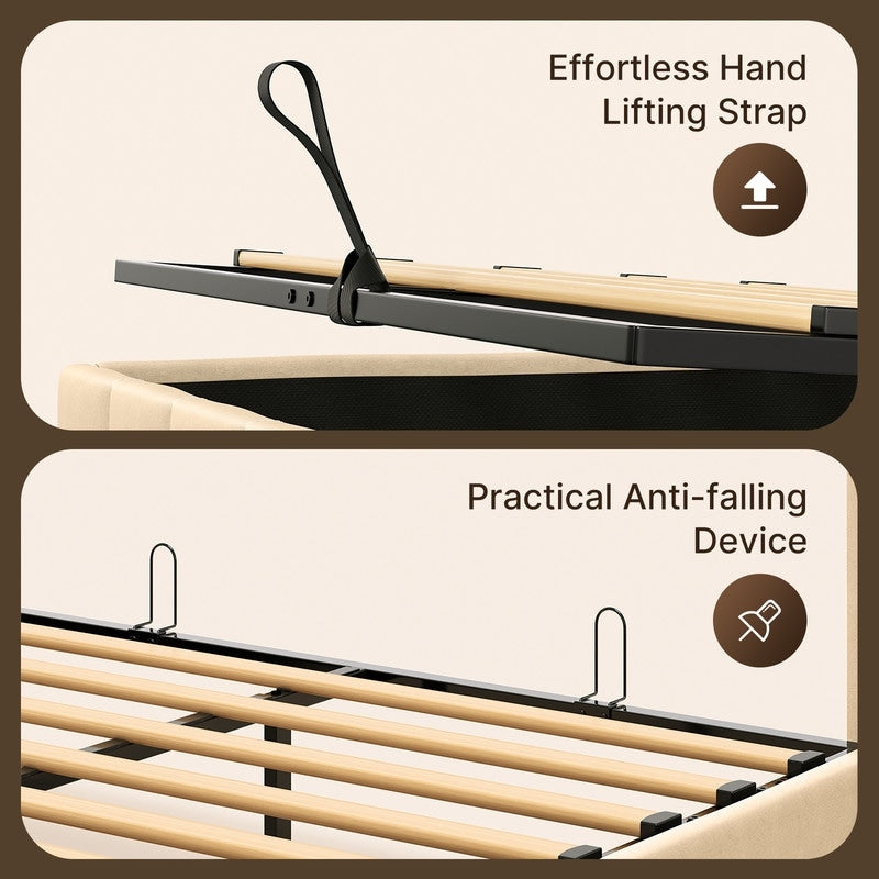 - Maximized Storage: The lift-up mechanism offers a large storage area for bedding, clothing, shoes, or any other items you want to keep out of sight, helping to declutter your bedroom.