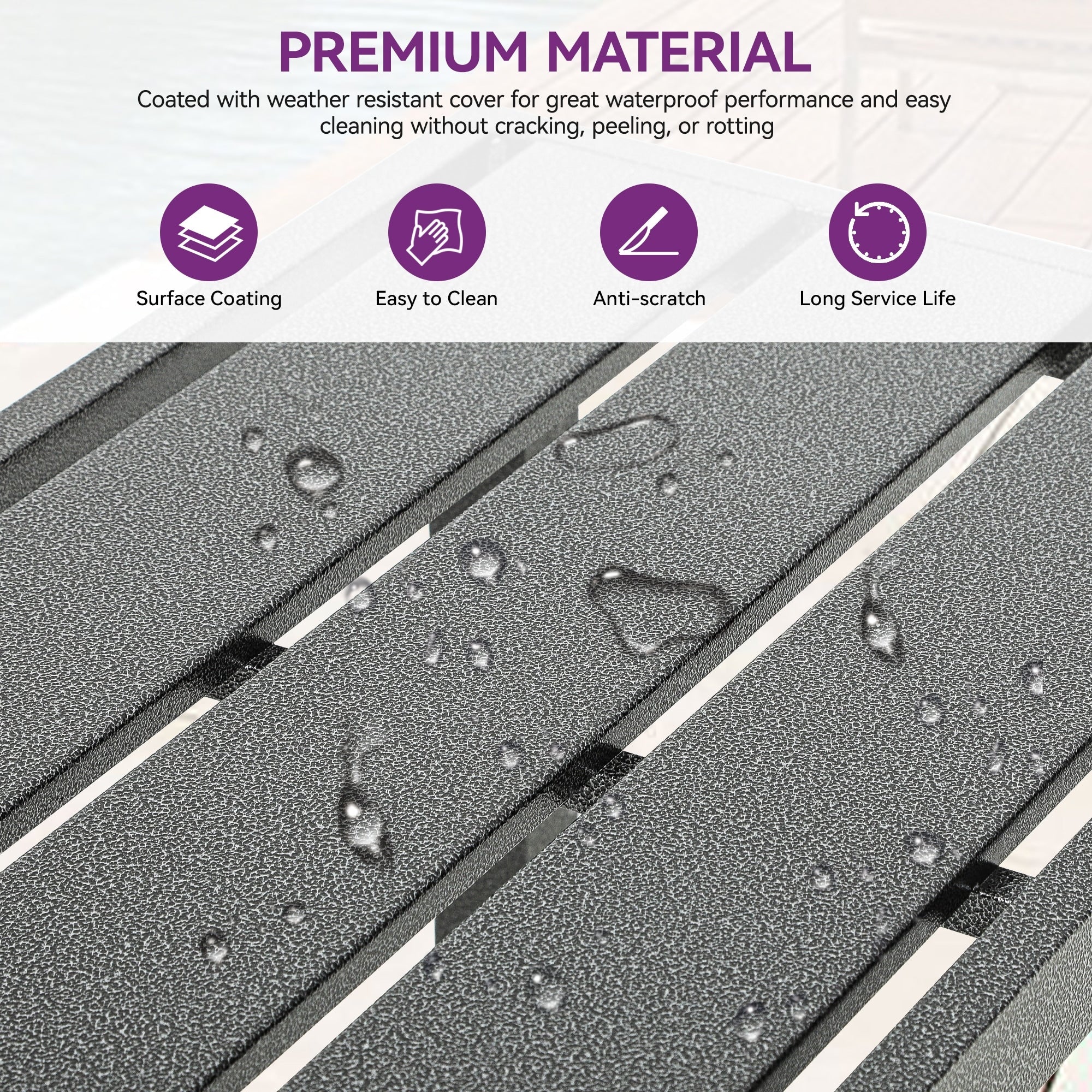 - Easy to clean: The tabletop is made of metal slats with a sleek finish, allowing stains to be effortlessly wiped with a cloth.