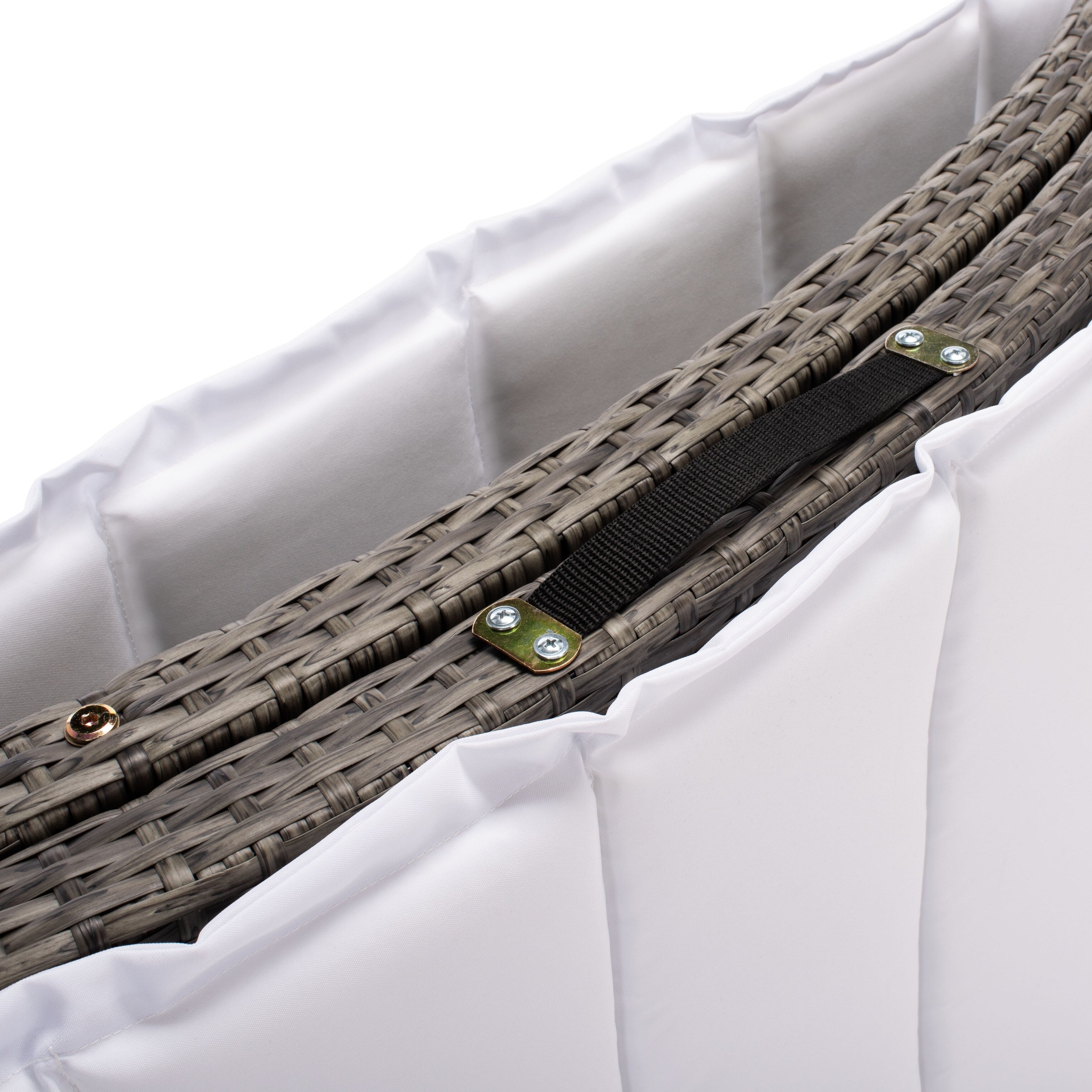 Luxuriate in the summer sun with this 3 Piece Sunlounger Set. The softly flowing elongated silhouettes of Carew's two PE rattan seats are perfectly topped with plush white cushions for maximum relaxation, and a matching end table is ideal for colorful drinks or fresh fruits.