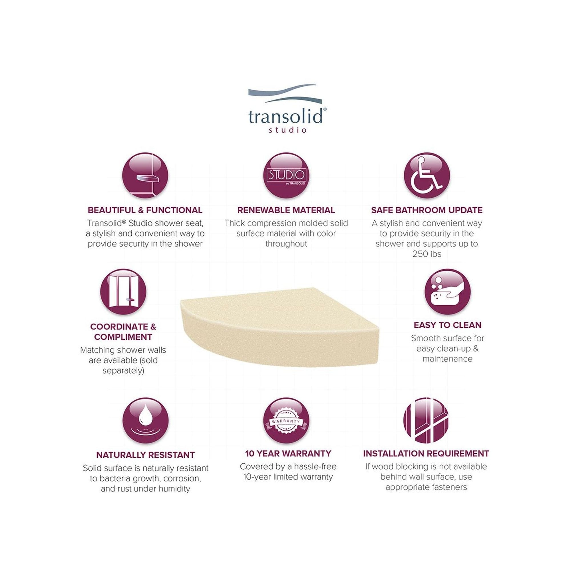 Transolid Studio 14-In X 14-In Solid Surface Wall-Mount Corner Shower Seat - 14.5 x 14.25 x 3