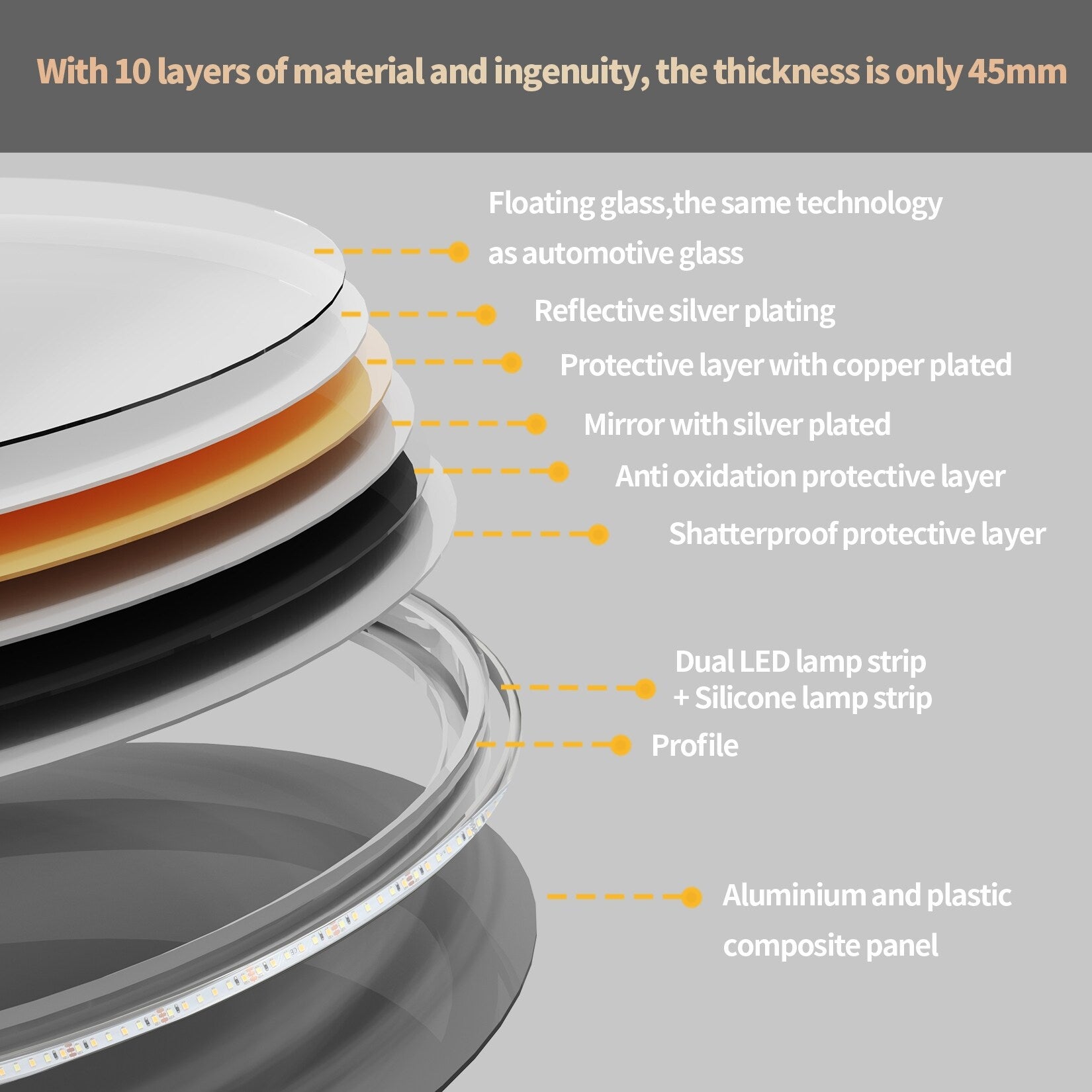 • HD Silver Mirror & Waterproof mirror IP65 Rated